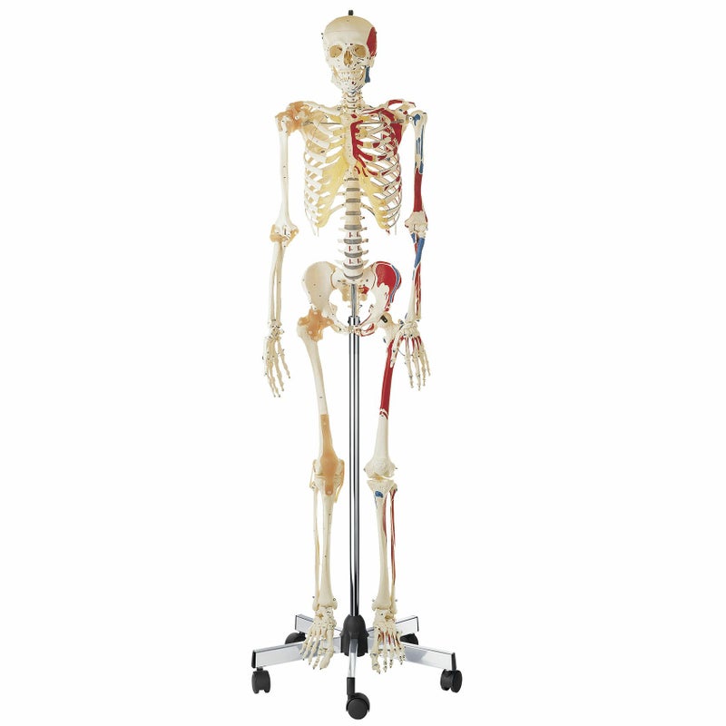 ●ソムソの等身大骨格模型の中で最も標準的な男性骨格モデルです。●骨構造の解剖学的詳細をすべてリアルに表現しました。●右側の膝関節、股関節、肘関節、肩関節に靭帯が付いています。 ●ナンバー表示有(ナンバーに該当する日本語表示有り)。●右側に筋肉の起始(赤)、停止(青)表示有り。●防塵カバー付き。